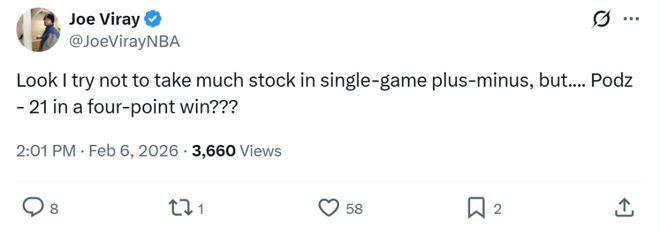 面对波杰这样的表现,勇士记者Joe Viray赛后都不禁吐槽道:“我一般不在意正负值,但波杰在球队赢了4分的情况下,正负值竟然为-21?”