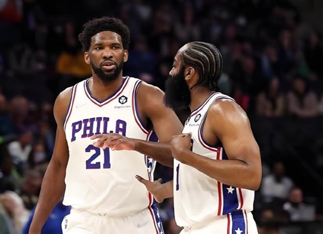 随后,哈登辗转来到费城,他再次找到了一位能和自己平起平坐、甚至比哈登更能承担球队主角的MVP队友恩比德。