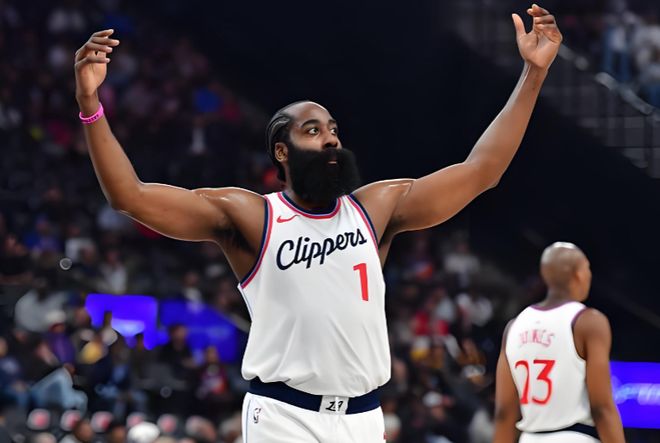 然后来到当下一站的快船,哈登似乎还想最后一搏,伦纳德、保罗·乔治,甚至老友威少,再加上哈登,这套组合乍看之下堪称篮网时期的进阶版本。