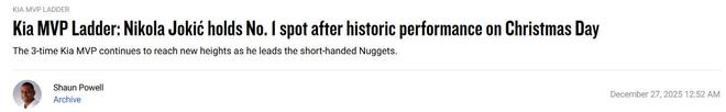 库里获提名!NBA官网MVP榜TOP10更新出炉,约基奇轰56+16+15后继续领跑,火箭队申京压线入选。