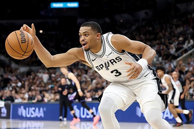 本场比赛中,马刺虽然输掉了比赛,但是球队的替补侧翼大将凯尔登-约翰逊(Keldon Johnson)也算是尽力了。约翰逊全场出场25分59秒,投篮8中5,三分线外4中3,罚球2中2,得到了15分2篮板的数据,还有1次失误和3次犯规,正负值为-4。约翰逊的出场时间和出手次数其实都并不多,但是他还是抓住了有限的机会得到了不少的分数,在进攻端为球队提供了大量的帮助和支持,也展现出了自己全面的得分能力。在其他球员手感不佳的情况下,他也是能够扛起球队的进攻大旗并且发挥出自己的特点。除此之外,约翰逊在防守端也算是中规中矩,也没有什么太大的问题。很显然,要不是有约翰逊,马刺只会输得更惨,而如果约翰逊能够得到更多的出场时间和更多的信任,如果他能够在关键时刻留在场上,说不定比赛的局面也会发生一些变化。
