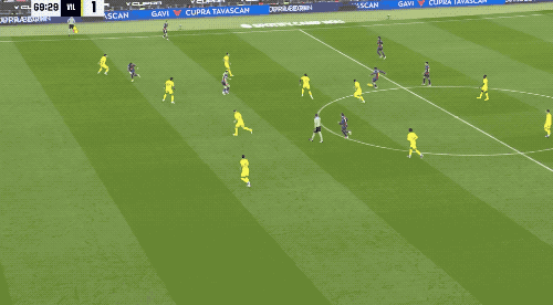 接下来的15分钟,场面相对平静,两队的防守都密不透风,直到比利亚雷亚尔出现失误。