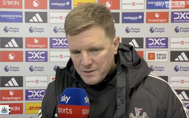 英超第18轮,纽卡斯尔联客场0-1不敌曼联。赛后,纽卡主帅埃迪-豪接受了天空体育的采访。