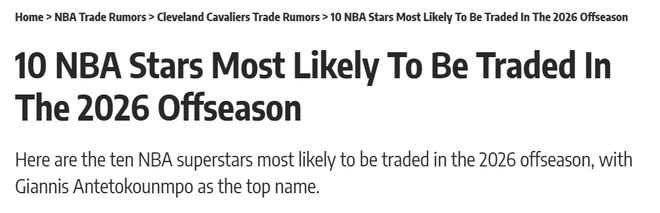 继续开抢!美媒更新交易市场TOP12大鱼:字母哥夺魁浓眉哥屈居第6
